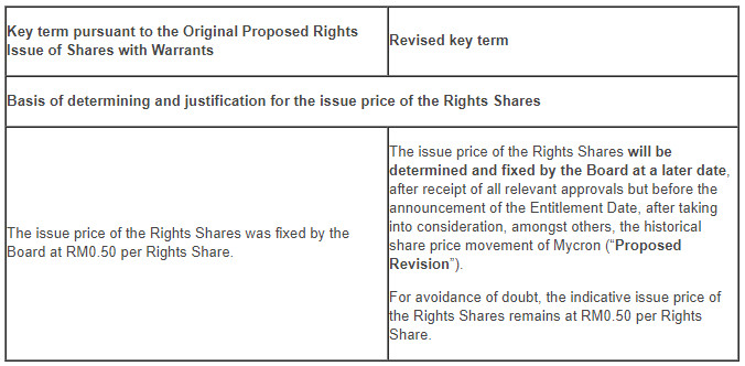 TA Securities, on behalf of the Board, wishes to announce the following revisions to the Original Proposed Rights Issue of Shares with Warrants (as defined herein the attachment) after due deliberation from the Board: -