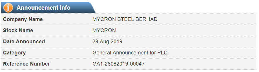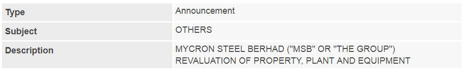 Pursuant to Paragraph 9.19(46) of the Main Market Listing Requirements of Bursa Malaysia Securities Berhad, the Board of Directors of MSB (“the Board”) wishes to announce that MSB had undertaken a revaluation exercise on the land, buildings, plant, machinery and electrical installation held by the Group. The Board had at its meeting held on 27 August 2019 approved the valuation reports and the incorporation of the revaluation surplus arising from the revaluation in the fourth quarter unaudited financial results of MSB for the financial year ended 30 June 2019.