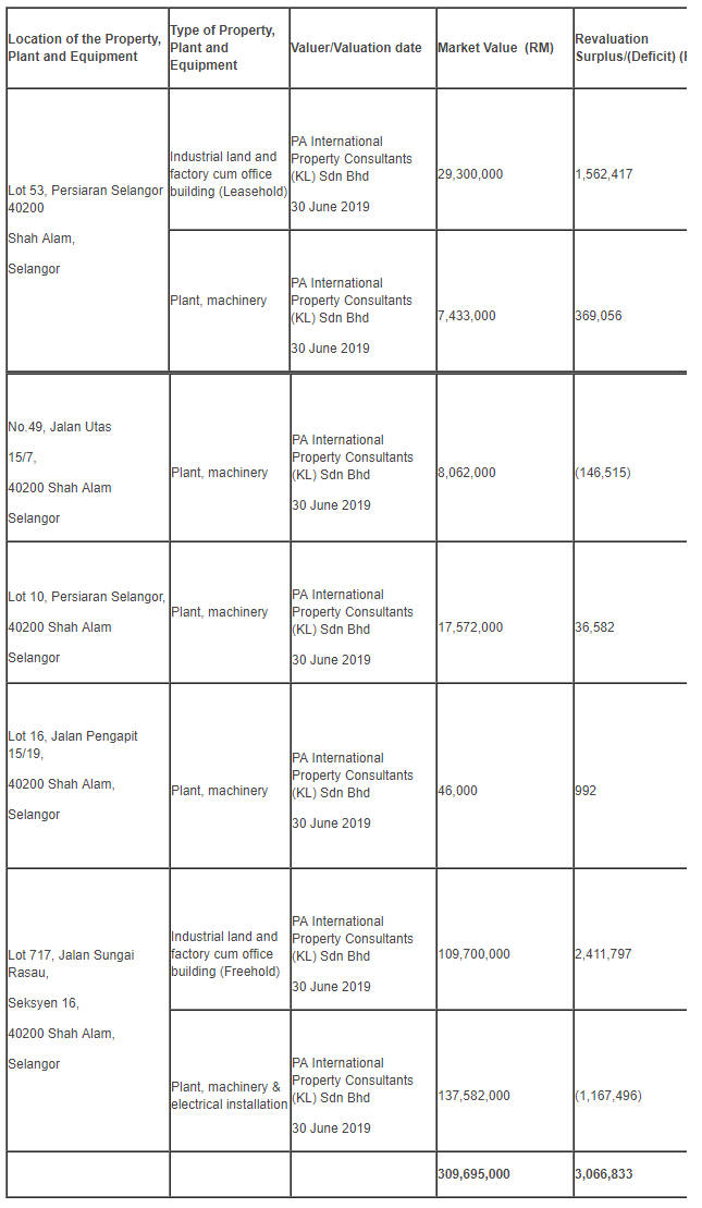 The revaluation was carried out in accordance with the Group’s accounting policy to determine the fair value of the Group’s property, plant and equipment comprising the land, building, plant, machinery and electrical installation periodically, with sufficient regularity.