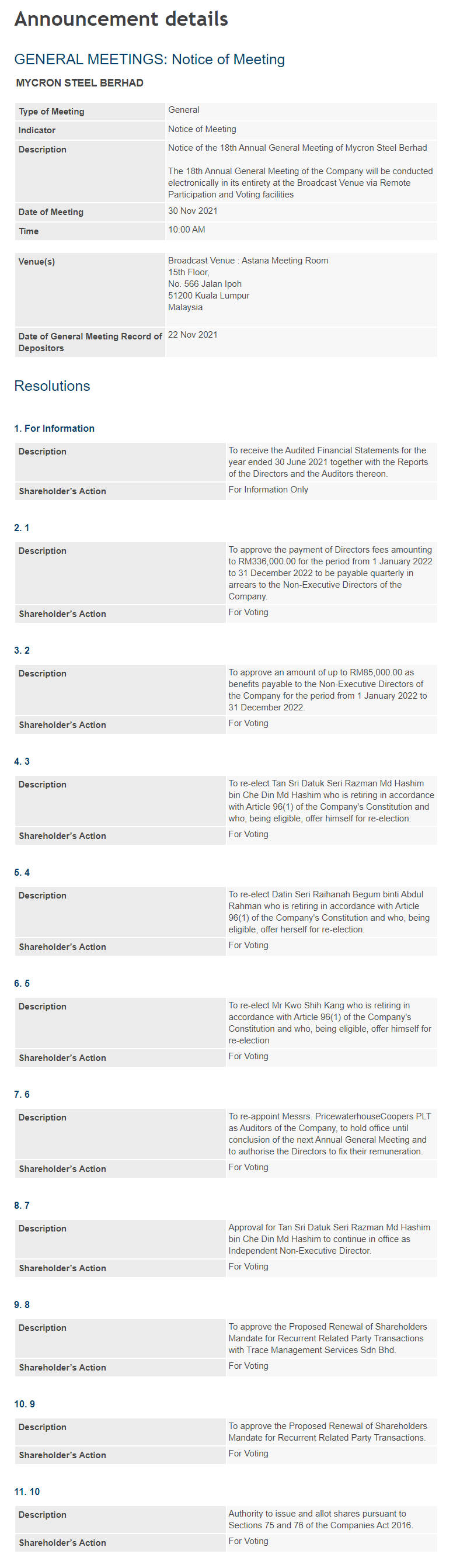 Please refer attachment below. Mycron Steel Berhad AR 2021 - Notice of AGM Advert (Bursa) >>
