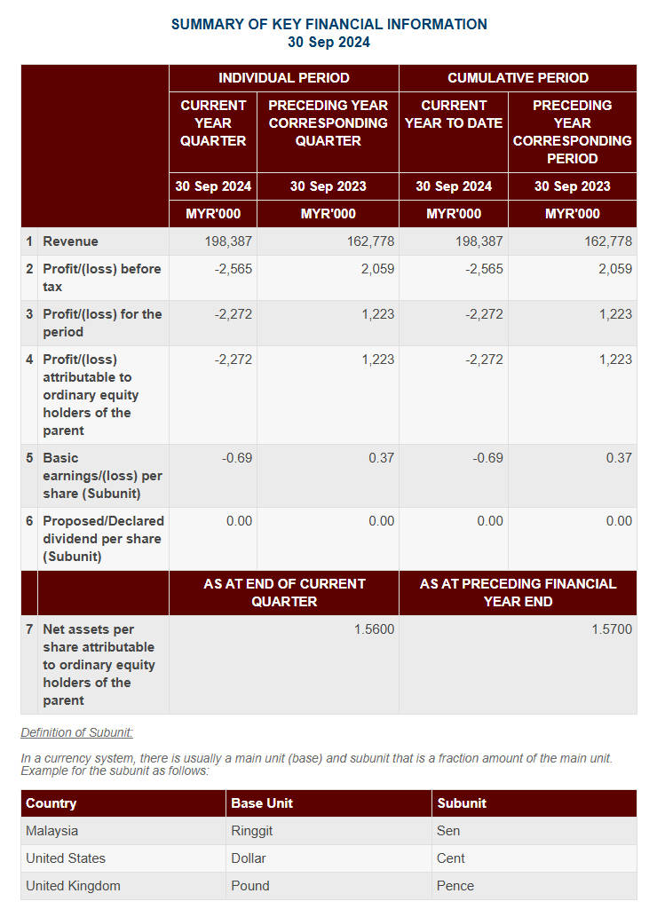Quarterly rpt on consolidated results for the financial period ended 30/09/2024