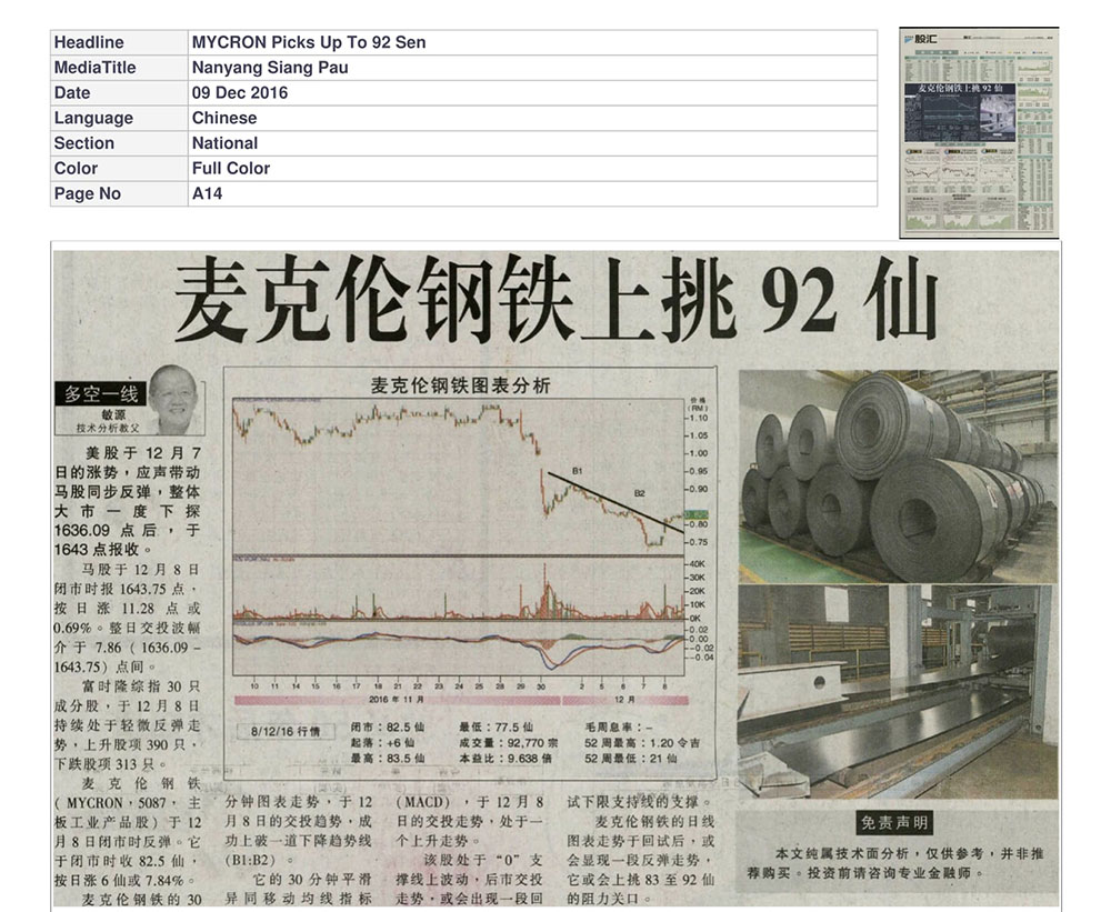 Mycron Steel Berhad | A pioneer in Cold Rolled Coils (CRC) and Steel Pipes