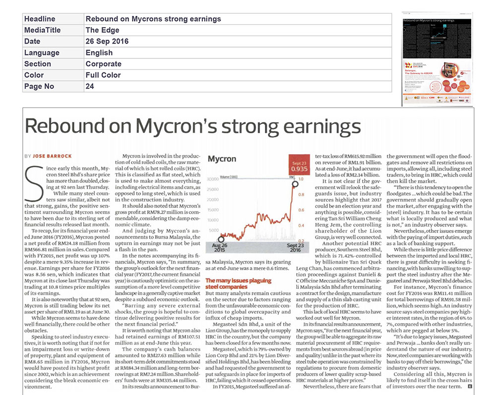 Mycron Steel Berhad | A pioneer in Cold Rolled Coils (CRC) and Steel Pipes